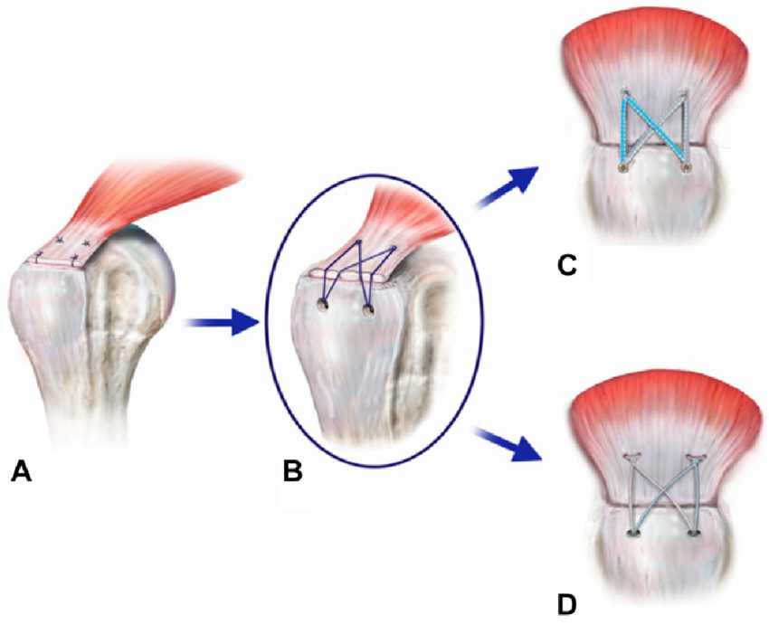 Double-row knotless arthroscopic repairs use suture anchors for superior footprint coverage, enhanced healing, and reduced re-tear rates in rotator cuff tears.
